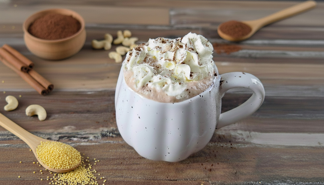 Próbáld ki különleges kakaónkat, amely kesudióból és kölesből készült, és kókuszvirágcukor teszi igazán egyedivé. Finom, krémes, teljesen tejmentes és 100%-ban vegán.